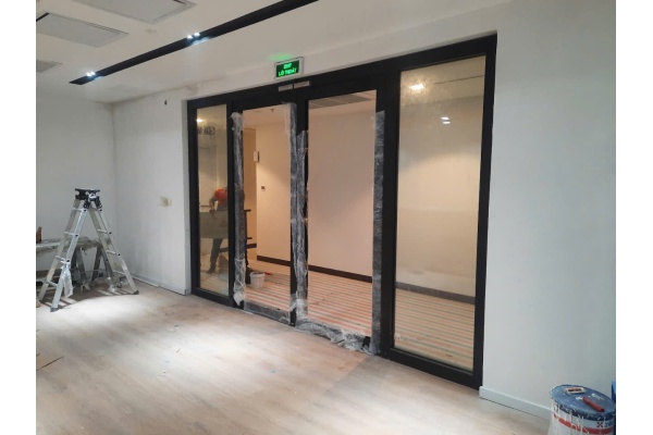 Hệ cửa trượt tự động hoặc cửa mở quay sử dụng kính chống cháy, tích hợp motor và cảm biến. Khi có sự cố cháy, cửa tự động mở/đóng theo kịch bản thoát nạn kết nối với hệ thống báo cháy trung tâm.